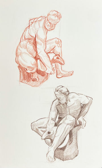 The year 2022 embodies a gradual transformation from an emphasis on foundational skills to experimentation with conceptual ideas and abstraction. Mediums shown include gouache, watercolor, oil paint, charcoal, and graphite.